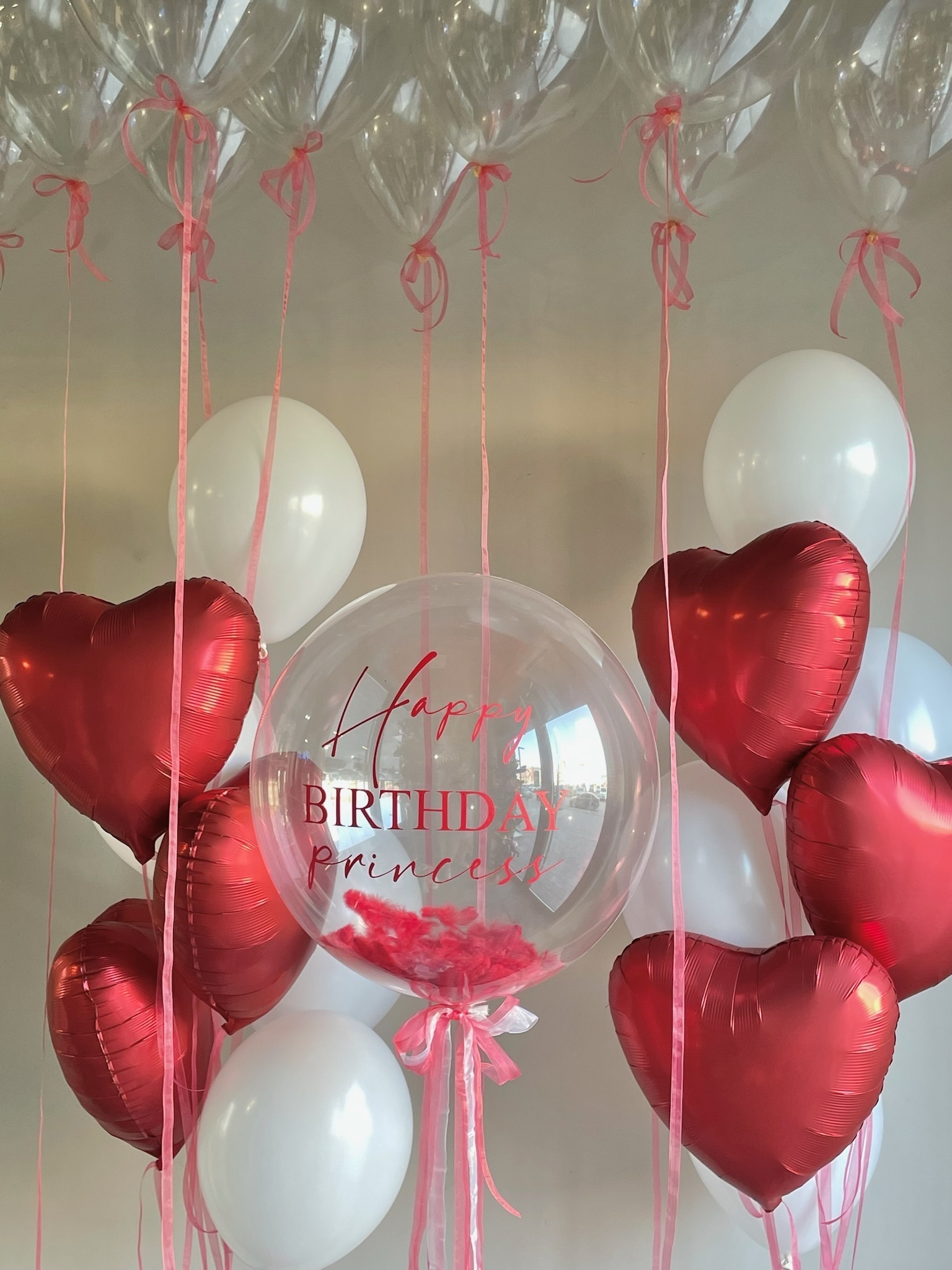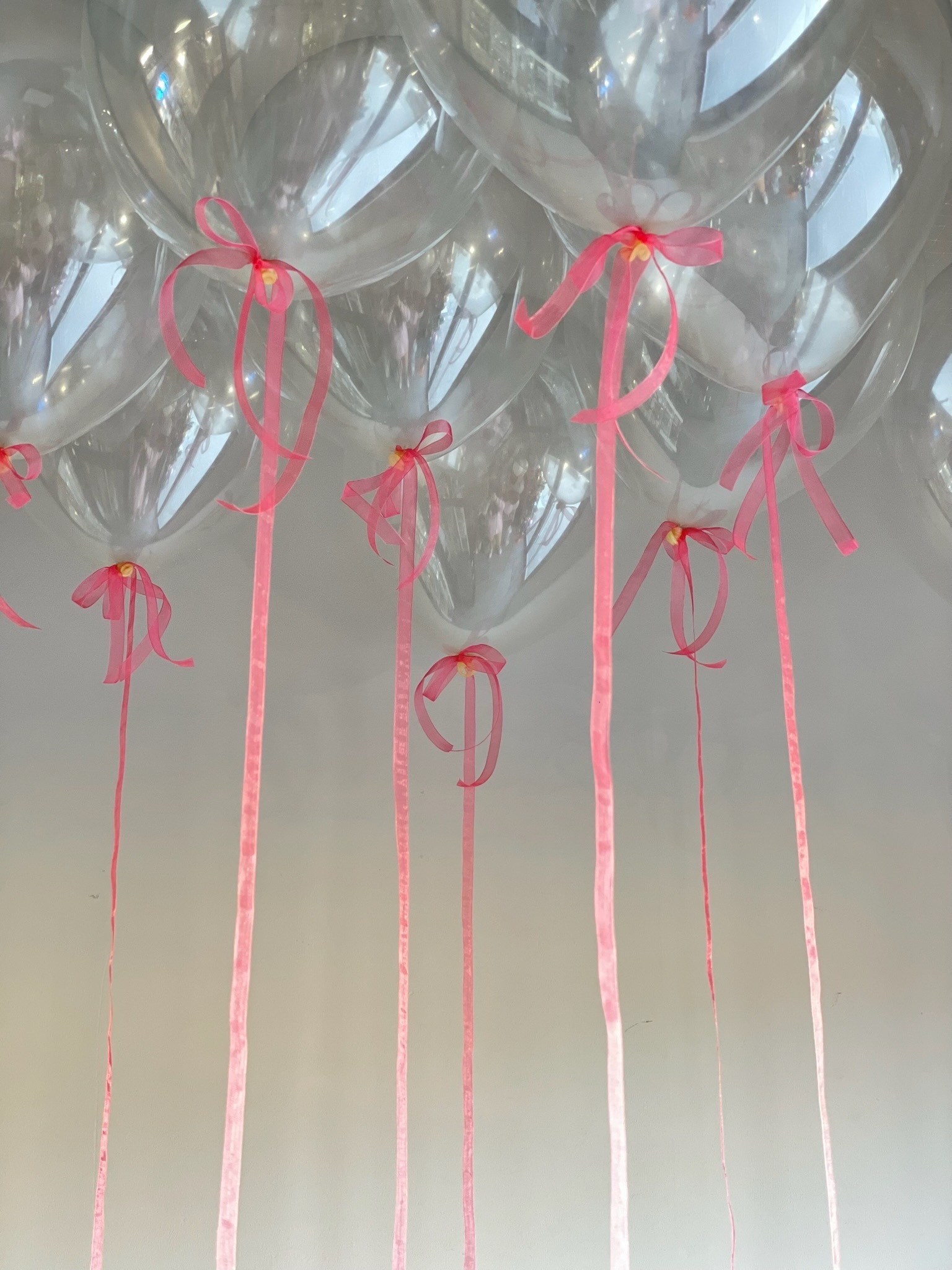 10 шаров прозрачных под потолок (с бантиками на ленте)